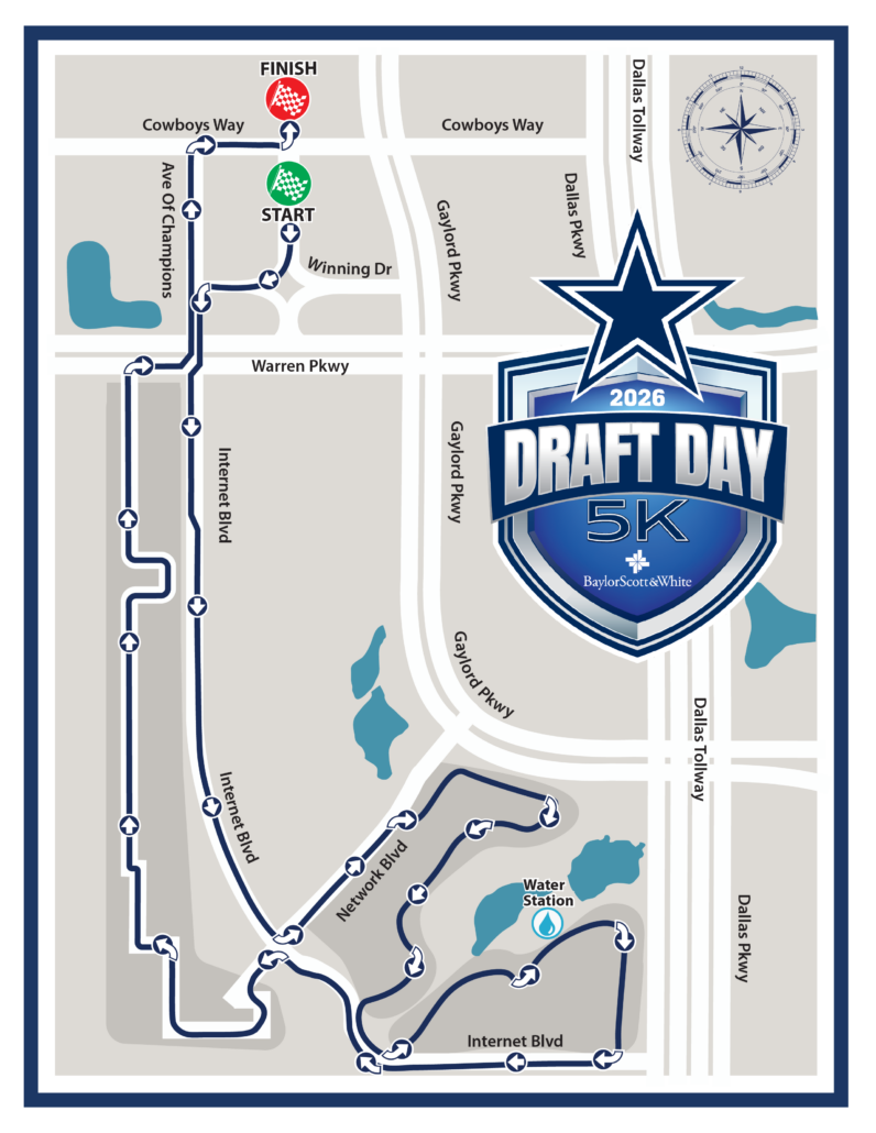 Celebrate the 2026 NFL Draft by running or walking for the Dallas Cowboys at the Draft Day 5K presented by Baylor Scott & White Health on Saturday, April 25 at the Star in Frisco.
